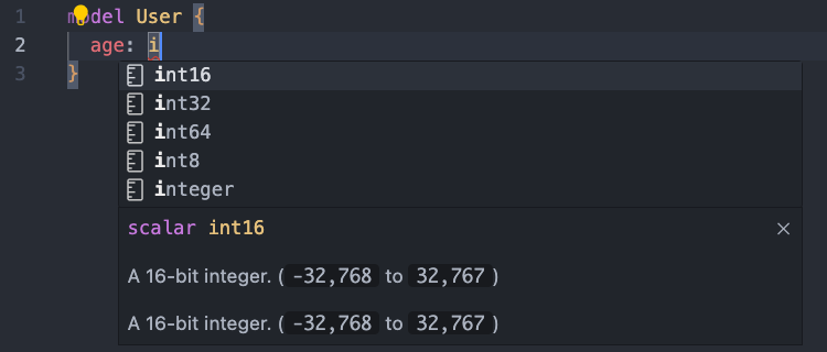 model Account { id: string; name: string; balance: decimal128;}
